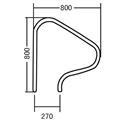 游泳池扶手,一般用于正規(guī)比賽標(biāo)準(zhǔn)的泳池,只是安裝在岸邊,不延伸到水里,是游泳比賽的標(biāo)準(zhǔn)扶手。材質(zhì)為304不銹鋼,耐腐蝕性強(qiáng),管徑為42mm,標(biāo)準(zhǔn)大小。厚度為1mm,質(zhì)量可靠;產(chǎn)品高800mm,寬度為470mm,安裝處的口徑寬為150mm