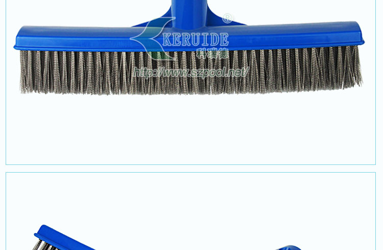 鋼絲刷屬于游泳池清潔工具之一,本產(chǎn)品叫法為:鋼絲刷,游泳池鋼絲池刷,鋼絲池刷。使用的時(shí)候需要和伸縮桿連接使用。是游泳池日常清潔的工具。