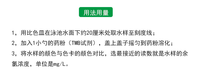 本產品的檢測范圍是:0.5-10mg/L,每瓶包裝是100次的用量。需配合兩用余氯速測盒套件中的比色皿一起才能使用。