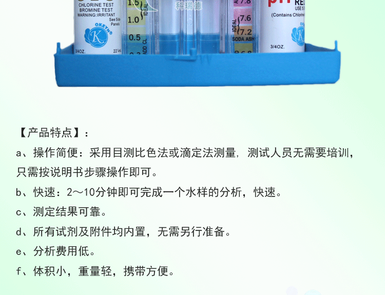 a、操作簡便:采用目視比色法或滴定法測量, 測試人員無需要培訓(xùn),只需按說明書步驟操作即可。