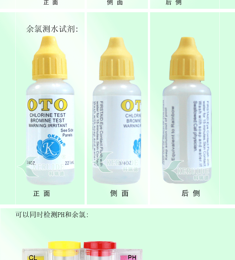 產(chǎn)品規(guī)格:余氯0.3-3.0mg/L;pH范圍6.8-8.2
