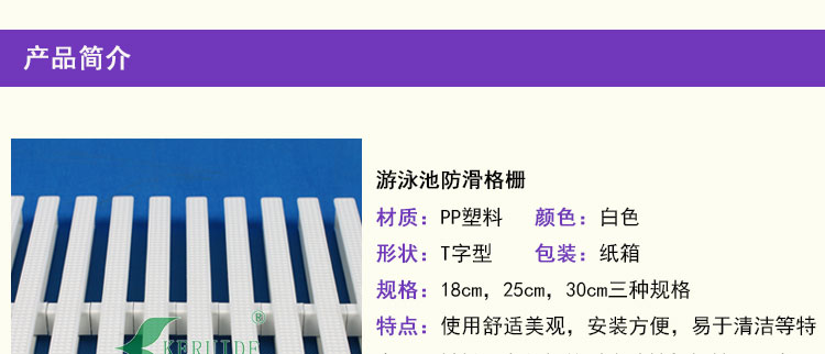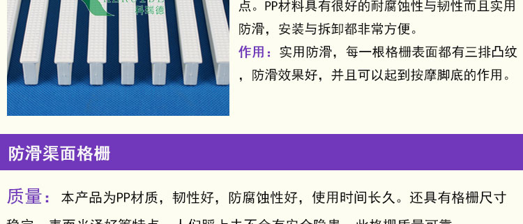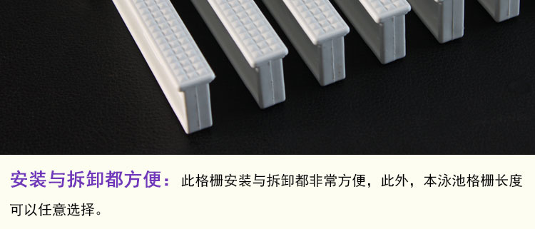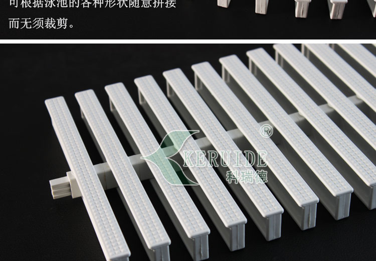 游泳池格柵,又叫泳池游泳池排水溝格柵,防滑渠面格柵,也可叫游泳池溢水格柵、防滑篦子、渠面篦子、地溝蓋;一般人們簡(jiǎn)稱(chēng)為格柵。作用為:作為游泳池四周排水溝的塑料蓋板,在保持可以方便人們的情況下又起到排水的功能。屬于游泳池排水設(shè)備。