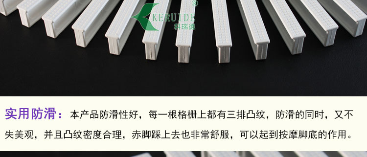 游泳池格柵又叫防滑渠面格柵、防滑篦子等,本游泳池格柵表面設(shè)計(jì)的凹凸紋,密度以及紋路合理的。防滑的同時(shí),人光腳踩上去也舒服。