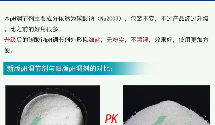 本pH調(diào)節(jié)劑,外形似細(xì)鹽,無粉塵,不漂浮,使用方便。