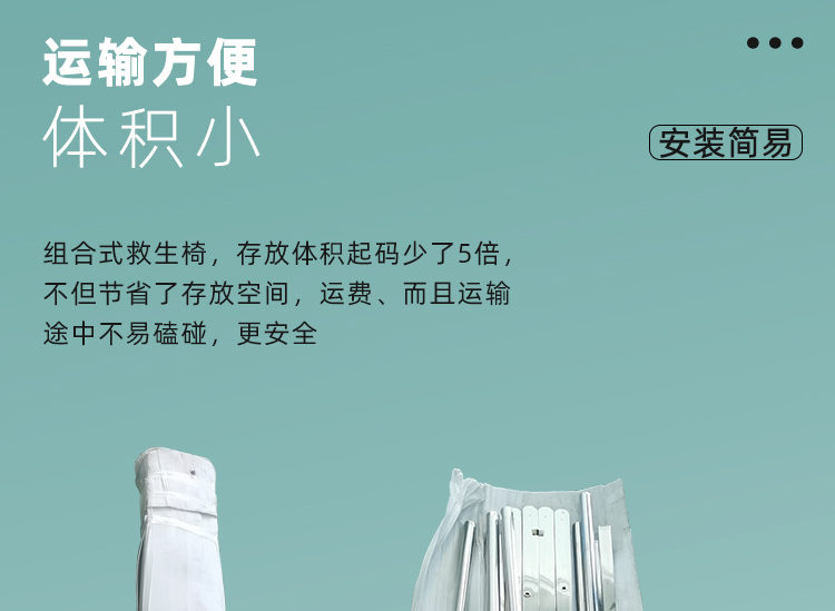 而我們設(shè)計的“wepools組裝組合式救生椅”可拆卸,存放體積減少了5倍(從原來的1.6立方減少到0.32立方),外包裝有7層紙箱包裝,并且不銹鋼還有包裝膜保護。不但節(jié)省存放空間,節(jié)約運費,而且運輸安全。