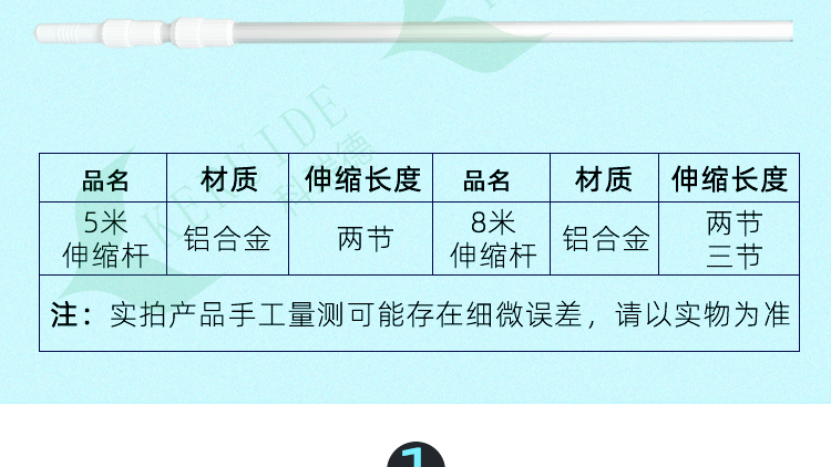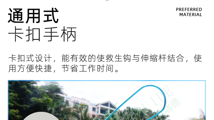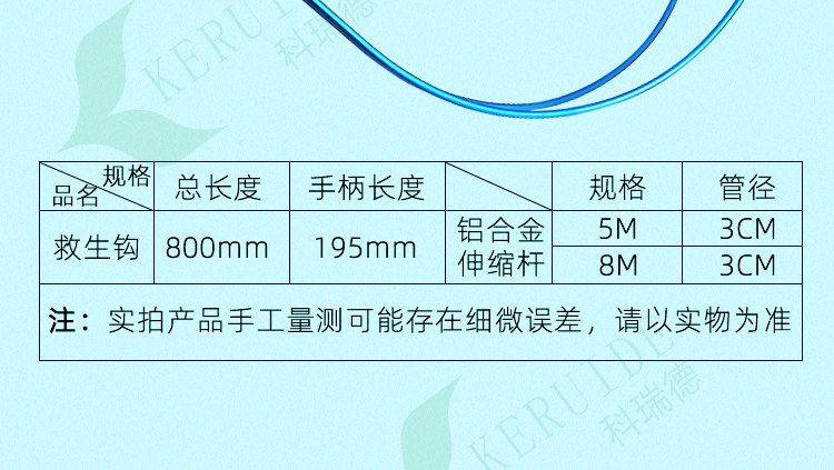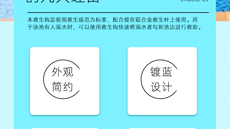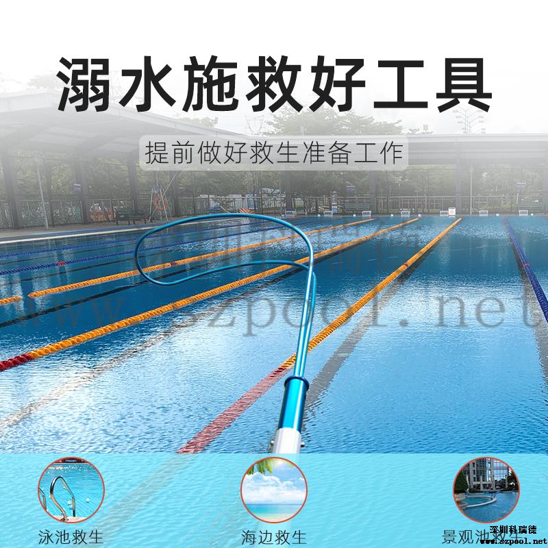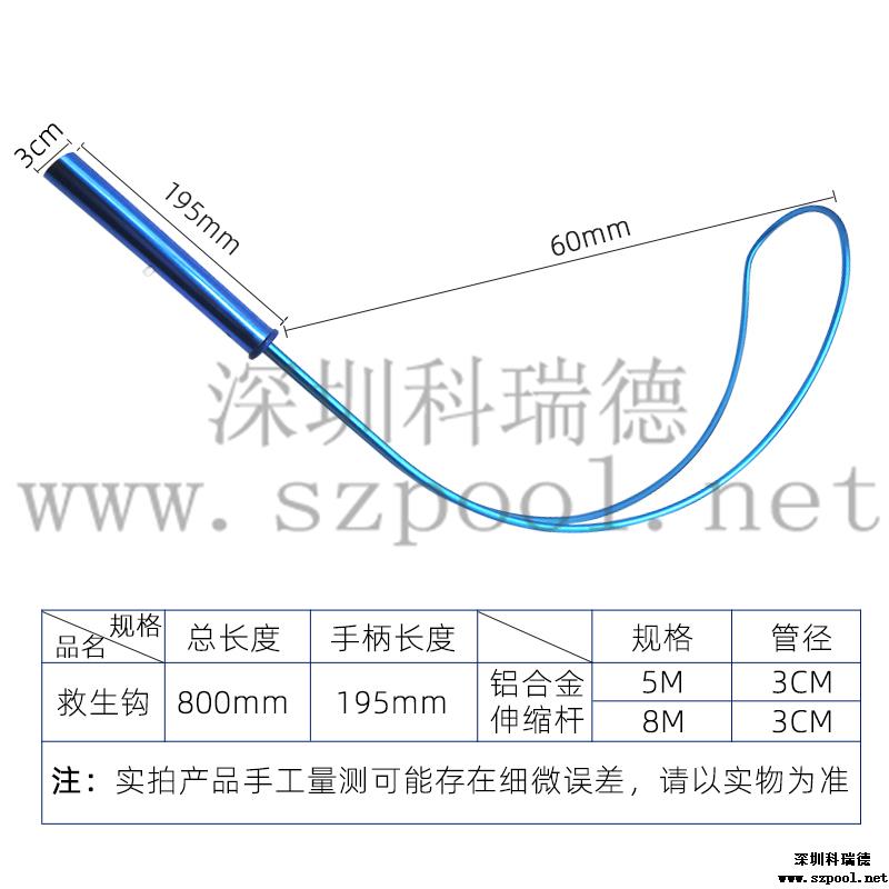 游泳池管理者可以根據(jù)自己的需求購(gòu)買(mǎi),并且,伸縮桿有5米及8米之分,泳池管理者也需要自行選擇。本救生鉤上新款表面鍍有一層藍(lán)色,大方美觀。