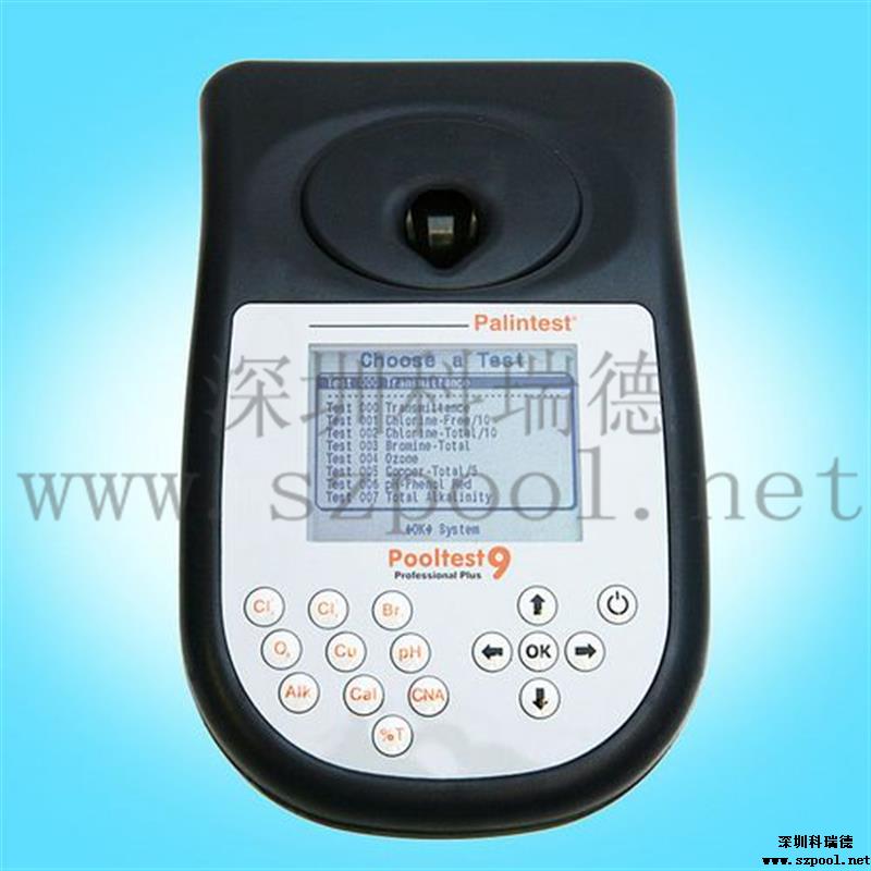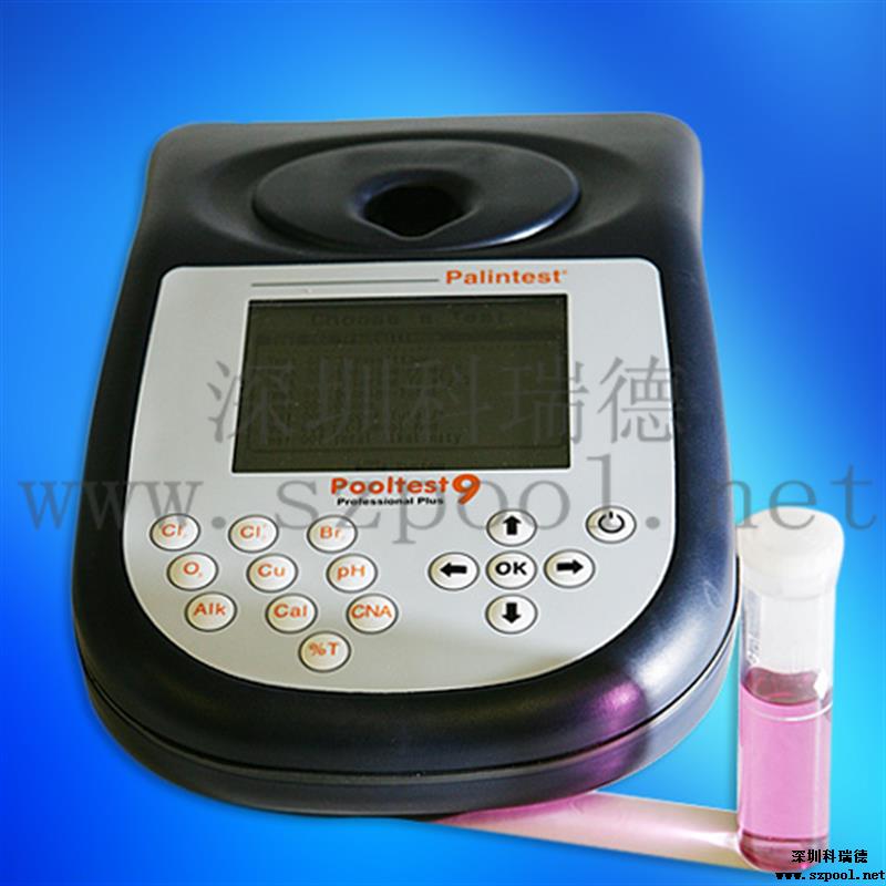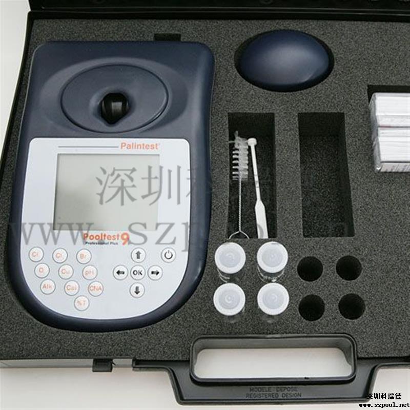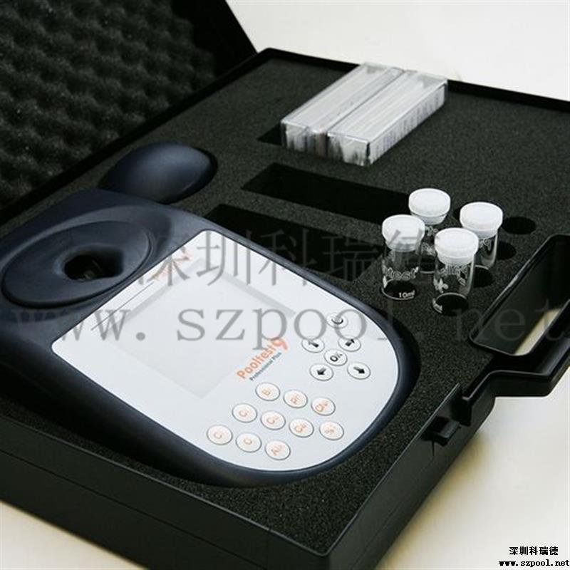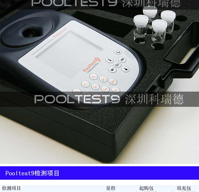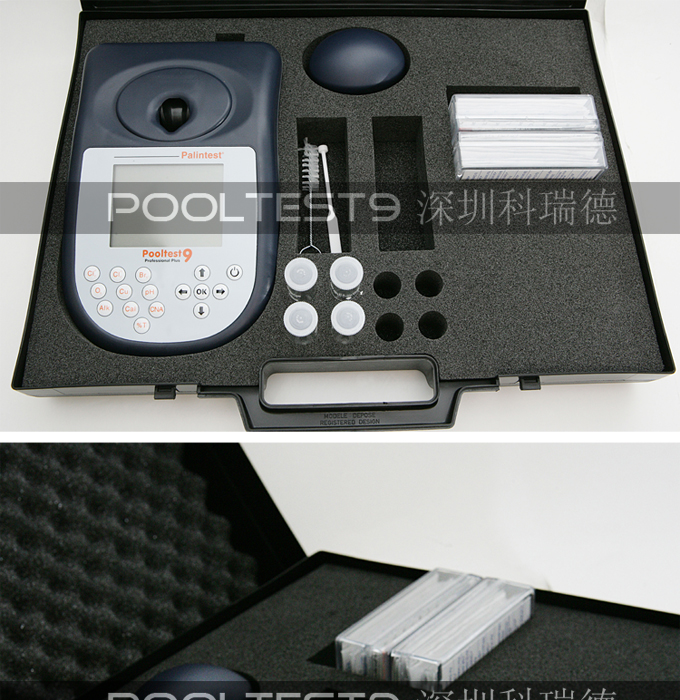 標(biāo)準(zhǔn)的Pooltest 9檢測(cè)套件包含一臺(tái)光度計(jì)主機(jī)和一只便攜式手提箱,
