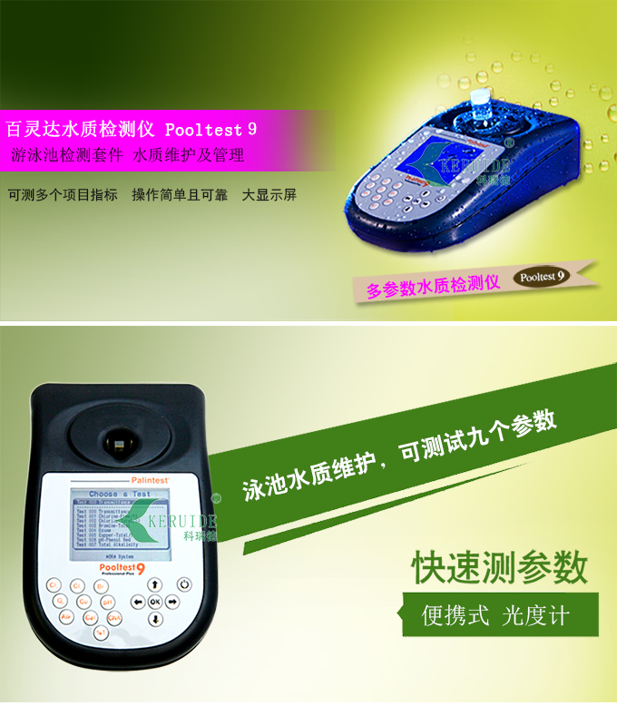 百靈達(dá)九參數(shù)水質(zhì)檢測(cè)儀能檢測(cè)泳池水質(zhì)多項(xiàng)目,自動(dòng)選擇波長(zhǎng),測(cè)量結(jié)果直接顯示;