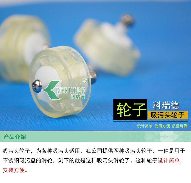 吸污頭輪子,為各種吸污頭提供,我公司提供兩種吸污頭輪子,一種是用于不銹鋼吸污盤的滑輪,剩下的就是這種吸污頭滑輪了。這種輪子設計簡單,安裝方便,在保證使用便利性的同時,質量可靠。