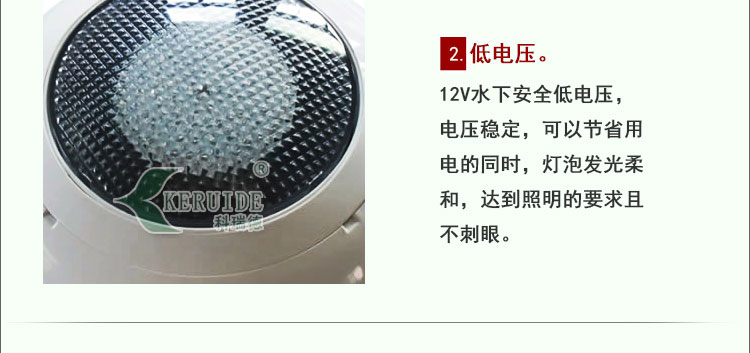 低電壓:12V水下安全低電壓,電壓穩(wěn)定,可以節(jié)省用電的同時,燈泡發(fā)光柔和,達到照明的要求且不刺眼。