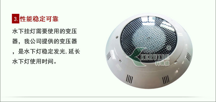 性能穩(wěn)定:水下掛燈需要用變壓器,我公司提供的變壓器,是水下燈穩(wěn)定發(fā)光,延長水下燈使用時間。 池壁燈款式以新款為主(實物為主)詳情客服了解更多!