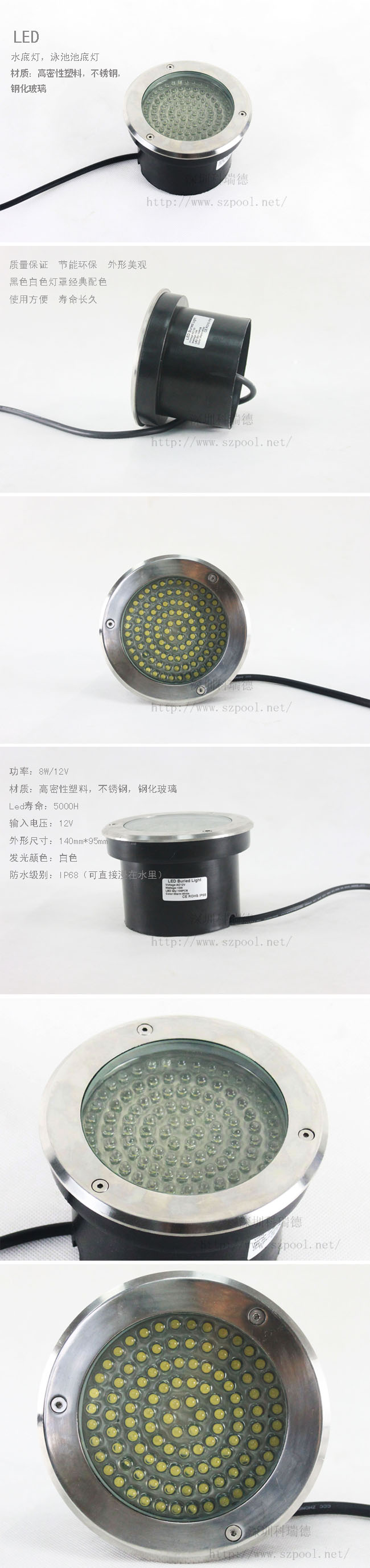 適合場所:應(yīng)用于各種噴泉、水池、游泳池及魚缸等照明裝飾。