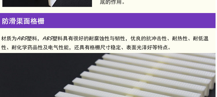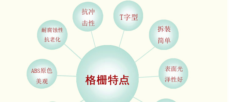 質(zhì)量可靠:格柵材質(zhì)為ABS塑料制成,具有優(yōu)良的抗沖擊性、耐熱性、耐低溫性、耐化學(xué)藥品性及電氣性能。
