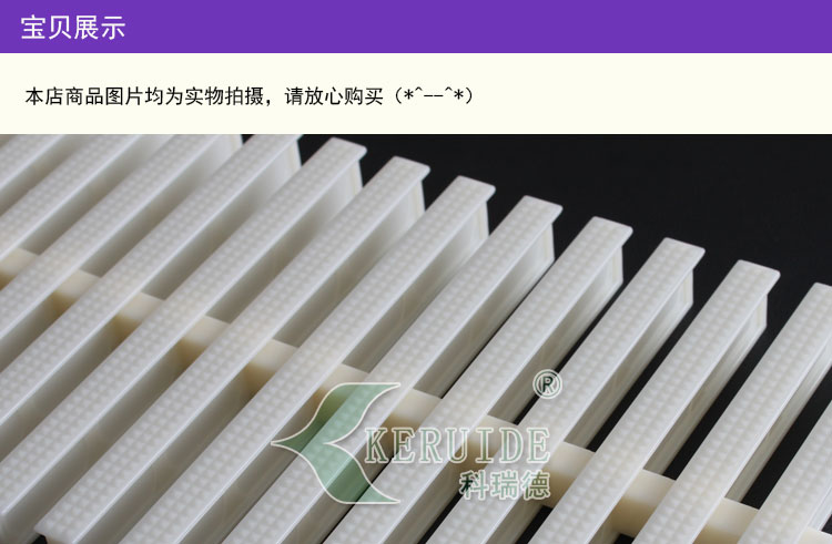 實(shí)用美觀:格柵表面有凸紋,防滑效果好。就算是赤腳踩上去也不會(huì)滑倒。并且紋路特別,配合骨色的材質(zhì),整體非常美觀的同時(shí)還有按摩人體腳底的功能。此外,本格柵安裝與拆卸都非常方便,并且極易清潔。