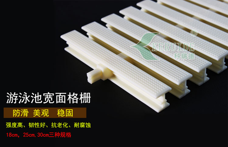 本產(chǎn)品為寬面游泳池格柵,每一條面寬為24mm,本產(chǎn)品的材質(zhì)為ABS塑料,顏色為骨色,規(guī)格為每條長(zhǎng)25cm。