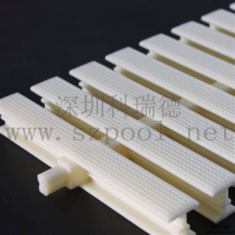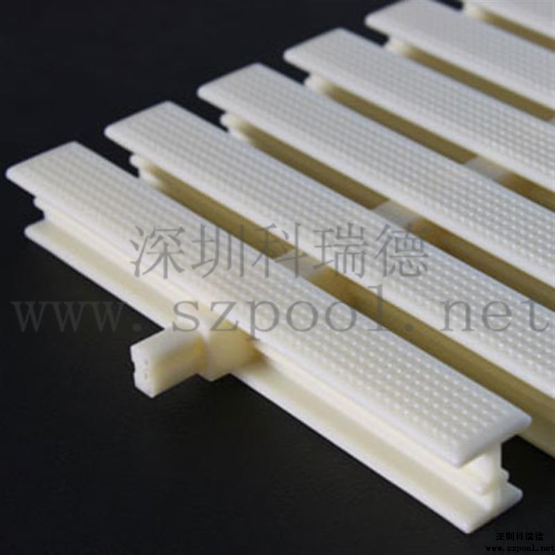 游泳池溢水格柵,簡稱游泳池格柵或者格柵,作用是:用于蓋住游泳池四周的渠溝,作為泳池周邊渠溝蓋板,有防滑的作用,并且可以用于溢水,防止泳池岸上積水等作用。