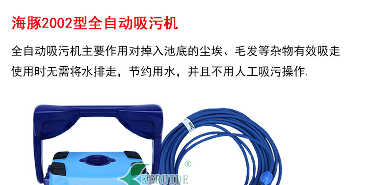 全自動吸污機也叫游泳池全自動吸污機,主要用于游泳池的池底吸塵,屬于泳池清潔設備的一種。本產(chǎn)品為美國進口,配20米線,帶遙控,可編程。可根據(jù)游泳池的大小設定不同的模式,靈活方便。海豚全自動吸污機的優(yōu)點是:吸污時無需要將水排走,節(jié)約用水,同時無需工作人員在場,設定自動清潔池底及池壁。