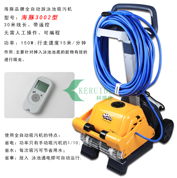 美國海豚自動吸污機3002型是游泳池全自動吸污機的一種,配30米線,帶遙控,可編程。
