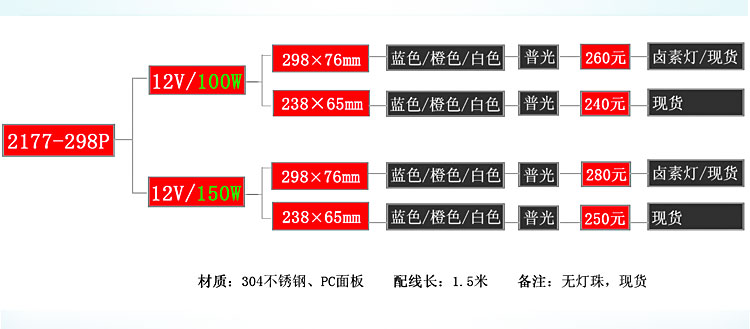水下掛燈材質(zhì):304不銹鋼、PC面板