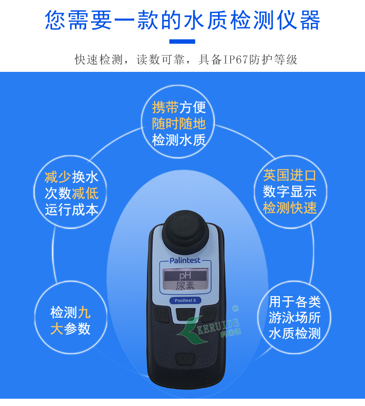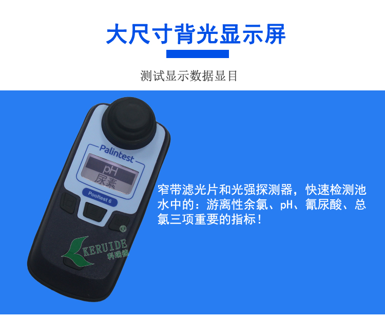 游泳池多參數(shù)水質(zhì)檢測儀,簡稱Pooltest6檢測儀或者尿素檢測儀,由英國百靈達(dá)進(jìn)口,可檢測游泳池余氯,PH,尿素、氰尿酸、化合氯、尿素等九項(xiàng)參數(shù)。