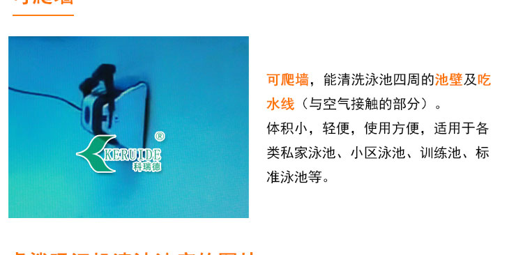 虎鯊自動(dòng)吸污機(jī)可爬墻,能清洗泳池四周的池壁及水線(與空氣接觸的部分)。體積小,輕便,使用方便,適用于各類私家泳池、小區(qū)泳池、訓(xùn)練池、標(biāo)準(zhǔn)泳池等。
