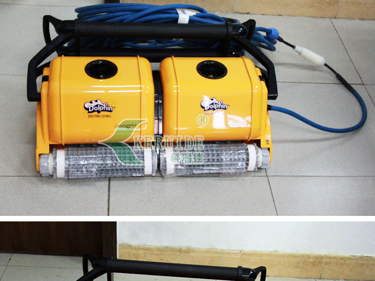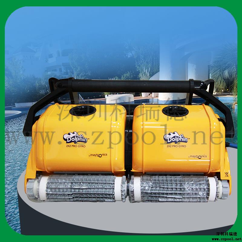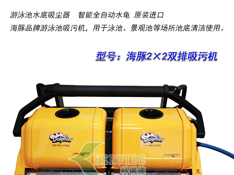 1,海豚2×2是由兩臺單體吸污機組合到一起,帶雙重刷子,雙高容量,雙層過濾,以及先進的陀螺儀,使它能全自動熟練地清潔整個泳池地板和墻壁。