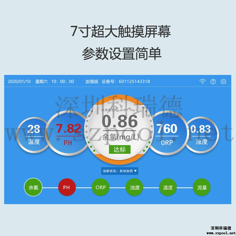 由于這些在線監(jiān)測(cè)儀測(cè)不了氯,加藥時(shí)無(wú)法準(zhǔn)確控制余氯,導(dǎo)致余氯指標(biāo)經(jīng)常不合格,使很多游泳池工作者工作難以開展,科瑞德基于用戶及實(shí)際需求,自主研發(fā)了一款能夠監(jiān)測(cè)余氯、PH、溫度三大參數(shù)并且可24小時(shí)在線監(jiān)測(cè)水質(zhì)的泳池在線監(jiān)測(cè)儀,還可以自動(dòng)智能變頻控制加藥,擁有實(shí)用新型、發(fā)明專利(ZL201620124788.1/ZL201720455331.3/ZL201520947011.0),是具有自主知識(shí)產(chǎn)權(quán)的專利產(chǎn)品——衛(wèi)普士余氯pH在線監(jiān)測(cè)儀/水質(zhì)在線監(jiān)測(cè)儀.