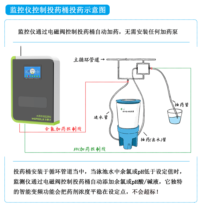 WEPOOLS 泳池在線監(jiān)測(cè)系統(tǒng)如何實(shí)現(xiàn)無(wú)泵自動(dòng)投藥?