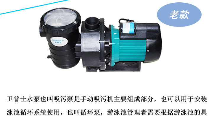 游泳池在使用沉淀劑后7~8小時(shí),我們需要對(duì)游泳池進(jìn)行吸污,并且只能用手動(dòng)吸污機(jī)。本款吸污泵是游泳池吸污機(jī)的主要部件,泳池吸污機(jī)的配件還有吸污盤,吸污管浮球,不銹鋼小推車,帶電纜線及管路等。