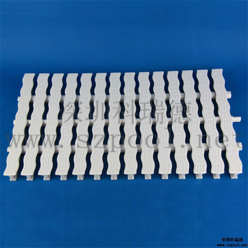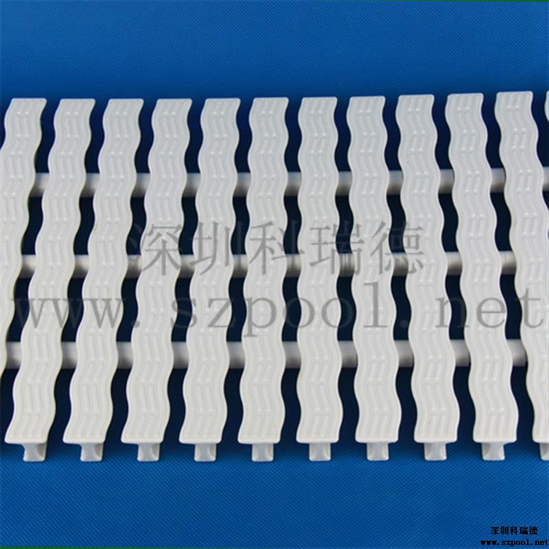 游泳池格柵是作為游泳池四周排水溝的塑料蓋板,既可以起到排水功能,同時可以方便人們行走,并具有防滑的效果,是游泳池必不可少的設(shè)備。另外格柵表面有波浪形凸紋,可以起到按摩腳底的作用。此格柵不但易用耐用,而且容易清潔,維護方便。并且可以拆卸和拼裝,無需裁剪。