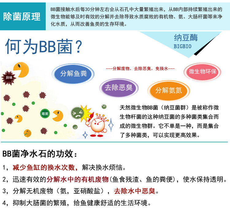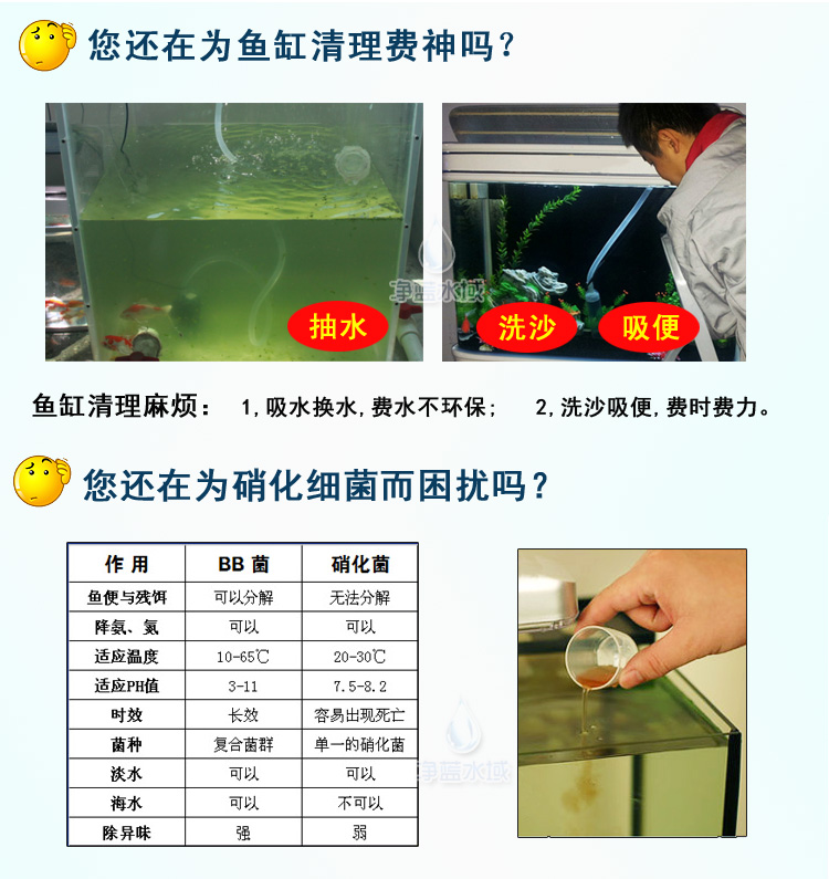 1,BB菌是以凈化水質(zhì)為目的而開發(fā)的產(chǎn)品,并不是去除無(wú)機(jī)物的產(chǎn)品,去除無(wú)機(jī)物時(shí)請(qǐng)使用循環(huán)過(guò)濾器。