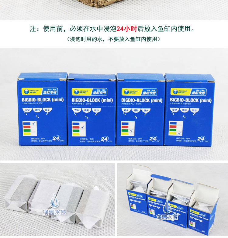 1,使用前,必須將bb菌凈水石在水中浸泡24小時(shí)后放入魚缸內(nèi)使用。(浸泡時(shí)用的水,不要放入魚缸內(nèi)使用)