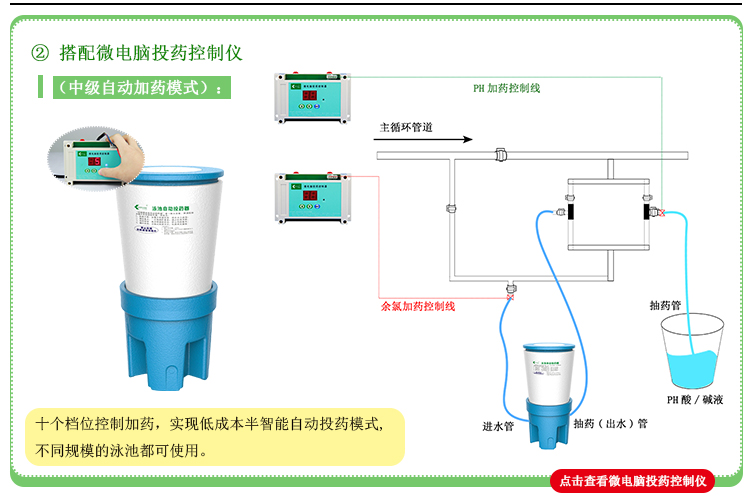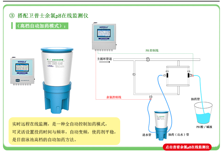 使用方法三:與衛(wèi)普士?余氯PH在線監(jiān)測(cè)儀搭配使用(高端自動(dòng)加藥模式)