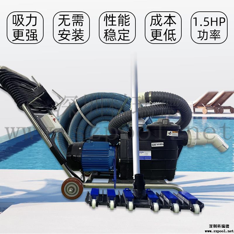 ① 組合式岸基型吸污機(jī):也就是我們平時(shí)說(shuō)的手動(dòng)吸污機(jī),可根據(jù)自身的游泳池規(guī)模來(lái)組裝合適的配件,使用時(shí)把吸污盤(pán)及吸污管放進(jìn)水底,人在岸上拖動(dòng)吸污桿或拉繩移動(dòng)吸污,其優(yōu)點(diǎn)是輕巧、方便,吸污干凈徹底,性能穩(wěn)定,安全性好,價(jià)格低;