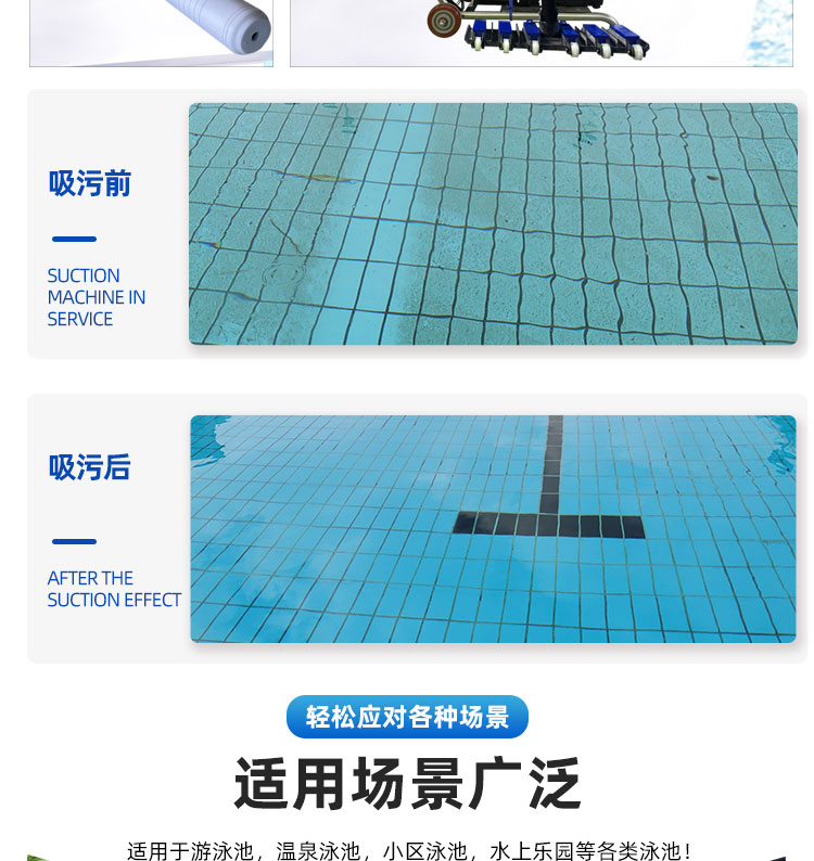 2.要根據(jù)游泳池的面積來(lái)選擇吸污機(jī)