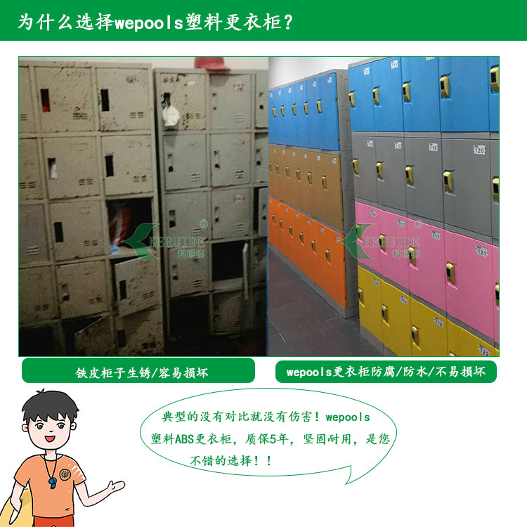Wepools塑料更衣柜以環(huán)保性、安全性、耐用性為向?qū)?,以?yōu)質(zhì)、美觀、新穎為特點(diǎn),采用ABS健康樹脂材料,色彩純正滿足不同行業(yè)需求!