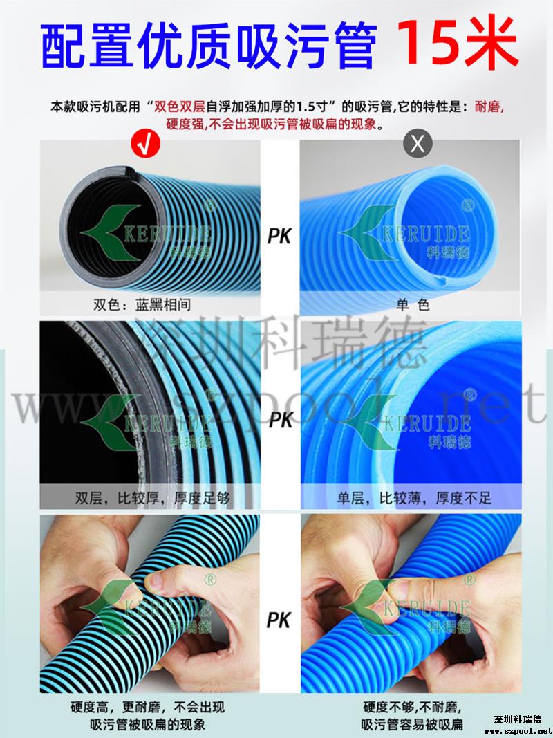 2030: 15米長(zhǎng)、1.5寸的吸污管;