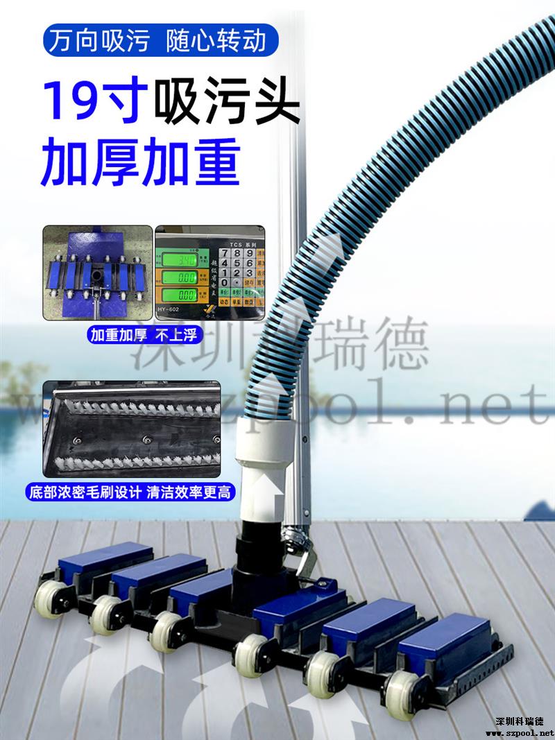 為什么推薦選擇我們的衛(wèi)普士3012手動(dòng)吸污機(jī)?衛(wèi)普士3012游泳池手動(dòng)吸污機(jī)配備19寸加重加厚吸污頭,避免吸污上浮,讓您站在岸邊就能輕松吸污!