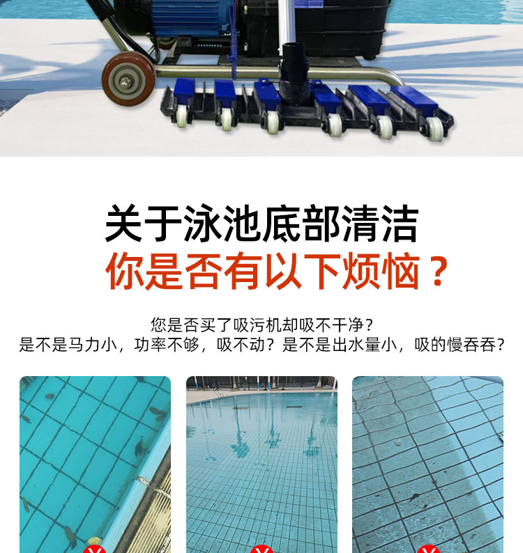 2.要根據(jù)游泳池的面積來(lái)選擇吸污機(jī)