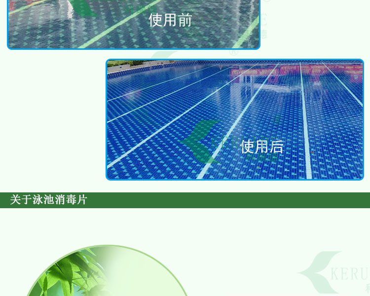 游泳池消毒片,又名含氯消毒片,具有持續(xù)殺菌消毒的特點(diǎn)。游泳池、桑拿水處理劑。能快速殺滅水中各種細(xì)菌,防止游泳池水中細(xì)菌超標(biāo)及水體發(fā)綠。游泳池消毒片藥效穩(wěn)定,持續(xù)時間長;殺菌能力是次氯酸鈉的40~80倍,用量少;使用簡便,溶解快。適合各類游泳池場所選擇,每年可減少泳池?fù)Q水,大大減少水費(fèi)成本。