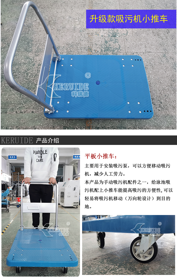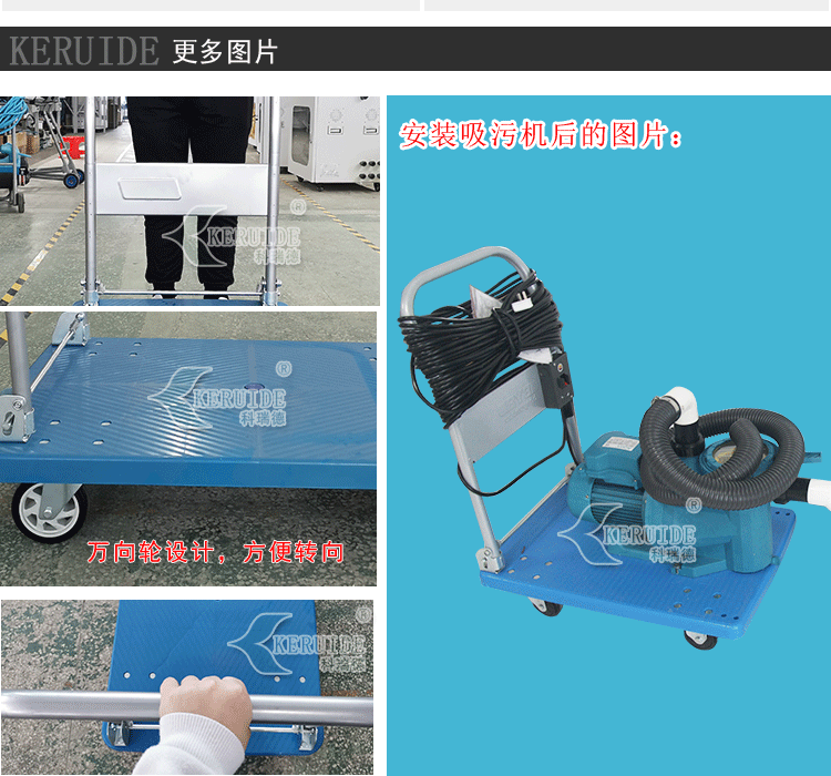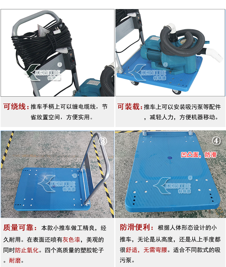 3,便利性:根據人體形態(tài)設計的小推車,無論是從高度,還是從上手度都非常契合。適合不同款式的吸污泵。