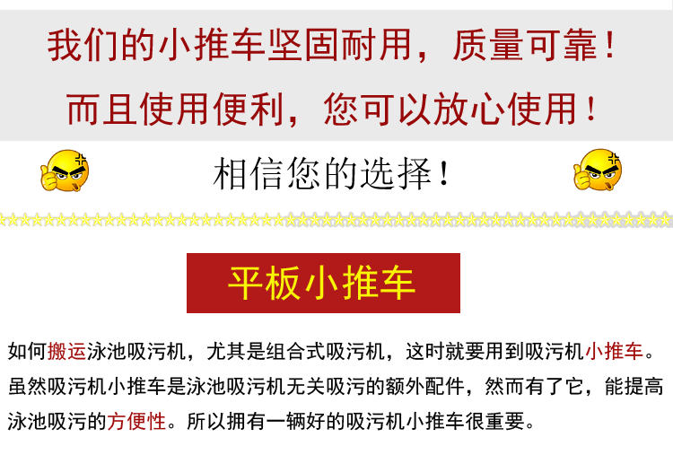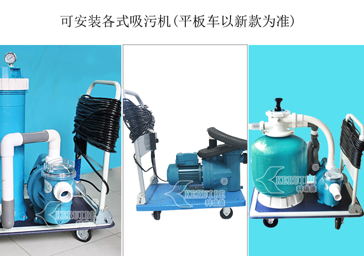 吸污機小推車也叫泳池吸污機手推車,不銹鋼小推車。用于安裝吸污泵,使吸污機可以方便地移動。