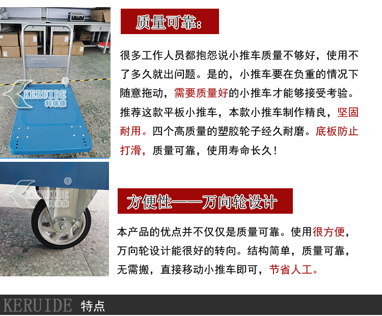 2,質量可靠:本款小推車重要部位由不銹鋼制成,經久耐磨。