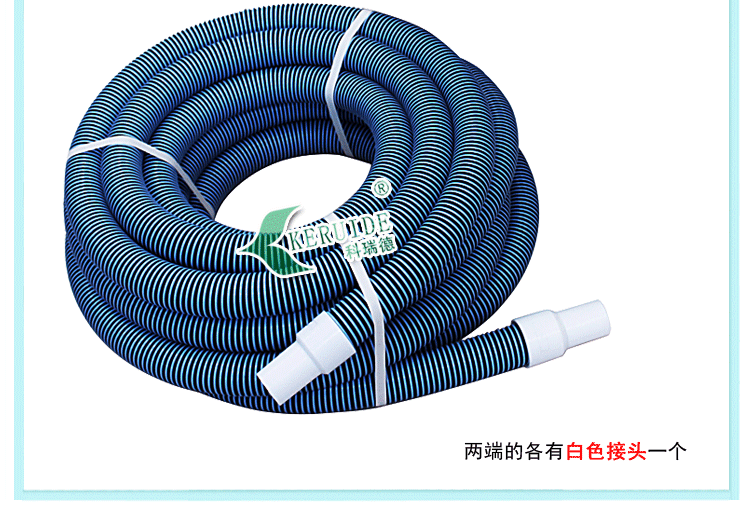 泳池吸污管的兩端的各有白色接頭一個(gè),固定密封的是與吸污泵連接的,可轉(zhuǎn)動(dòng)的是與吸污頭連接的。吸污時(shí)吸污管能夠上浮于水面上,有效防止由于移動(dòng)而攪動(dòng)池底的細(xì)小臟物影響吸污效果。