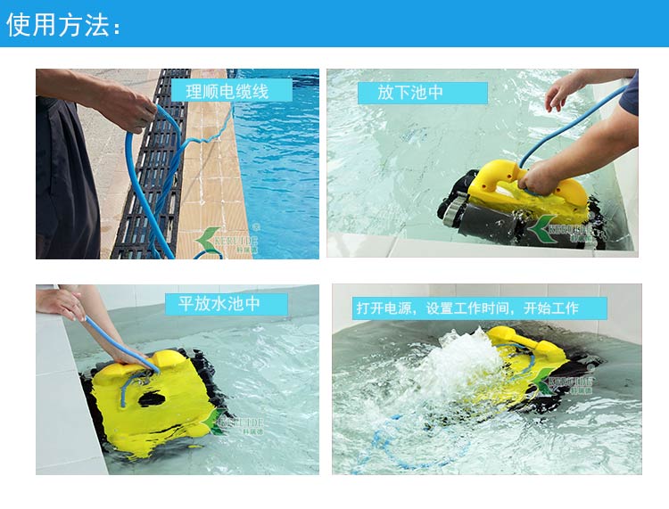 1. 請在打開電源前將吸污機(jī)放入水中;機(jī)器出水后在岸上請務(wù)必關(guān)掉電源;