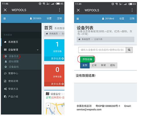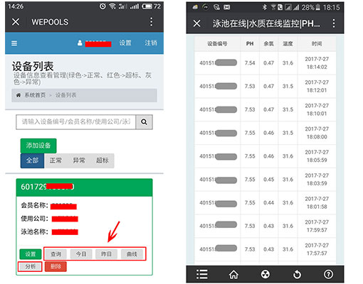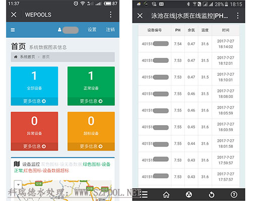 (3)添加設(shè)備成功后,可以隨時(shí)查看泳池水質(zhì)情況