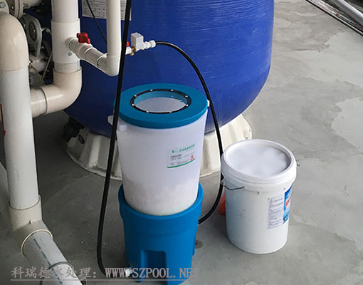 科瑞德投藥桶:固液分離、即用即溶的方式,避免了一次性浸泡全部消毒片所造成的失效快、氣味重這個(gè)重大缺陷;水隔式密封及桶內(nèi)負(fù)壓設(shè)計(jì)可以使得投藥器密封性更好,并且消毒片溶解時(shí)產(chǎn)生的氯味會(huì)被抽入泳池循環(huán)管道中。這樣在較密閉的機(jī)房?jī)?nèi)也不會(huì)有氯味產(chǎn)生,很好地避免了氯對(duì)人體造成的不適,也有效防止了氯對(duì)機(jī)房設(shè)備的腐蝕??迫鸬峦端幫芭c衛(wèi)普士在線監(jiān)測(cè)儀配合使用實(shí)現(xiàn)全自動(dòng)投藥,確保水質(zhì)達(dá)標(biāo)!