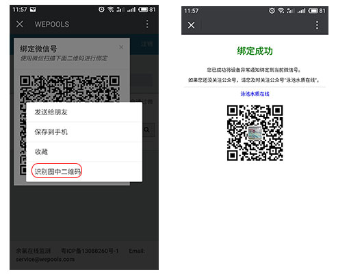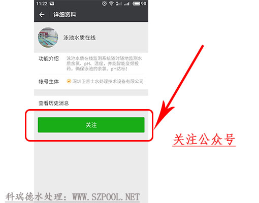 3.手機(jī)關(guān)注微信公眾號(hào)“泳池水質(zhì)在線”