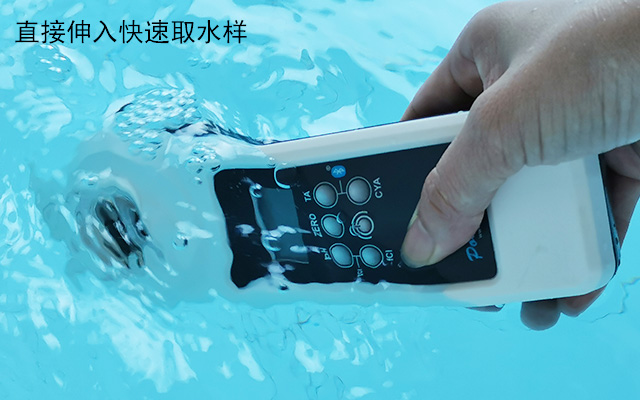 普量水質(zhì)檢測儀能快速測出水中游離性余氯,儀器自帶樣品槽伸入泳池快速取水樣,先進(jìn)行零點(diǎn)校正,再加入相應(yīng)的余氯試劑片,碾碎溶解均勻,蓋上遮光帽,進(jìn)行讀數(shù)即可得出結(jié)果。