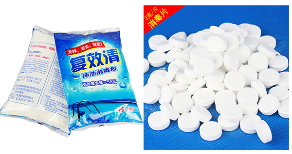 在加入殺藻劑間隔1小時(shí)后,投加消毒粉或消毒片(含氯消毒劑)進(jìn)行消毒,消毒片每立方水投2-4克,消毒粉每立方水投1-2克,具體投加量按泳池總?cè)萘坑?jì)算,新放的水余氯低,殺菌力弱,因此需要雙倍用量投加。